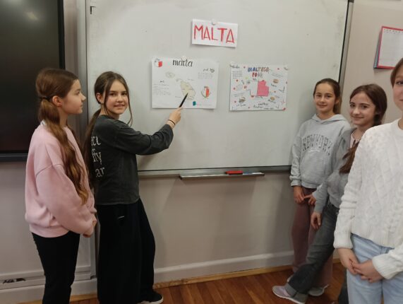 Temat: MALTA Uczniowie pracowali w grupach 3-4 osobowych. Każda grupa miała za zadanie zrobić projekt o Malcie w języku angielskim a następnie zaprezentować go całej klasie.