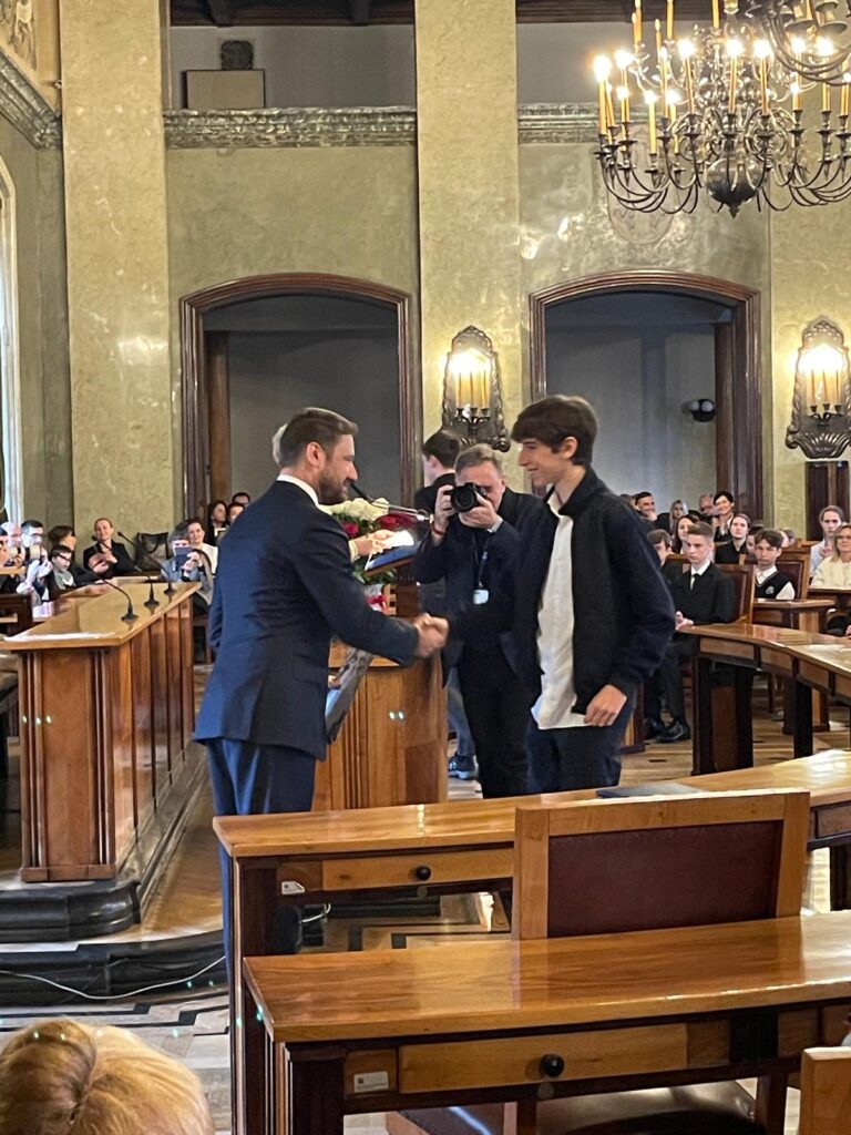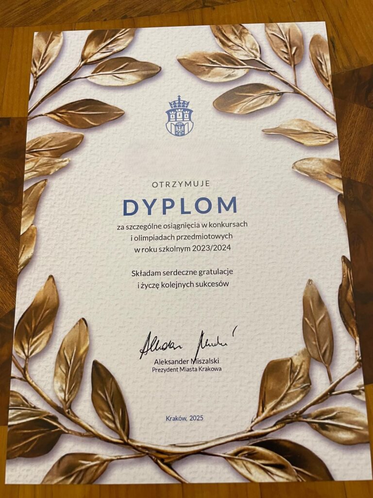 25 kwietnia 2025 r. Prezydent Miasta Krakowa Aleksander Miszalski pogratulował uczniom sukcesów osiągniętych w konkursach i olimpiadach przedmiotowych w roku szkolnym 2023/2024.