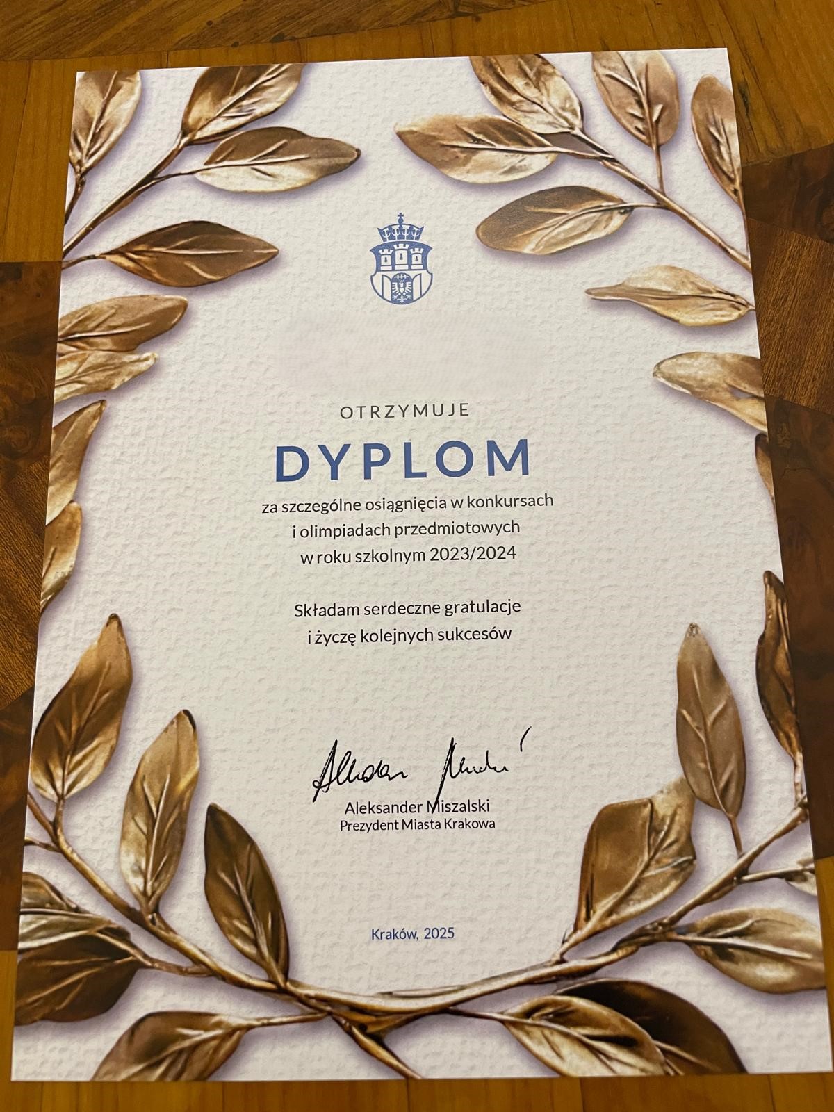Gratulacje od Prezydenta Miasta Krakowa