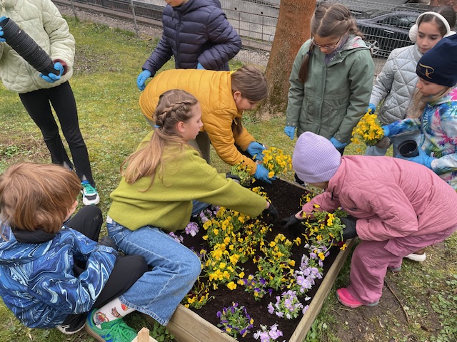 Uczniowie klas 1-3 wraz z nauczycielami, zasadzili w ogrodzie szkolnym piękne, wiosenne kwiaty. Teraz wiosna zawitała do naszej szkoły już na dobre.